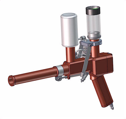 During the summer of 2013, the PyroShot HS design experienced a major overhaul. Getting rid of the welds that held the handle (shot tank) onto the receiver and replacing them with a single bolt now makes converting the PyroShot to any configuration in the series a simple task. Each kit comes with a handle, barrel assembly, and bolt that corresponds to the kit purchased. |